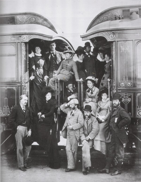 Неизвестный фотограф. Британские туристы, позирующие на фоне Пульмановского спального вагона перед путешествием. 1876 г.
