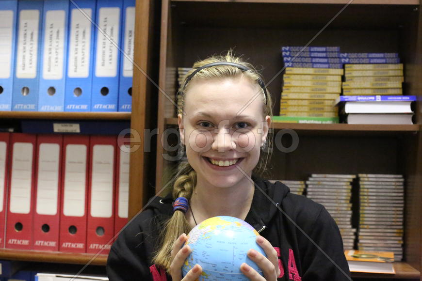 Анастасия Викторовна Филимонова с глобусом в руках