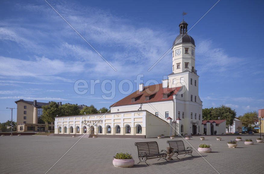 Несвижская Ратуша - древнейшая в Беларуси среди обширной площади. Ранняя осень, погожий день.