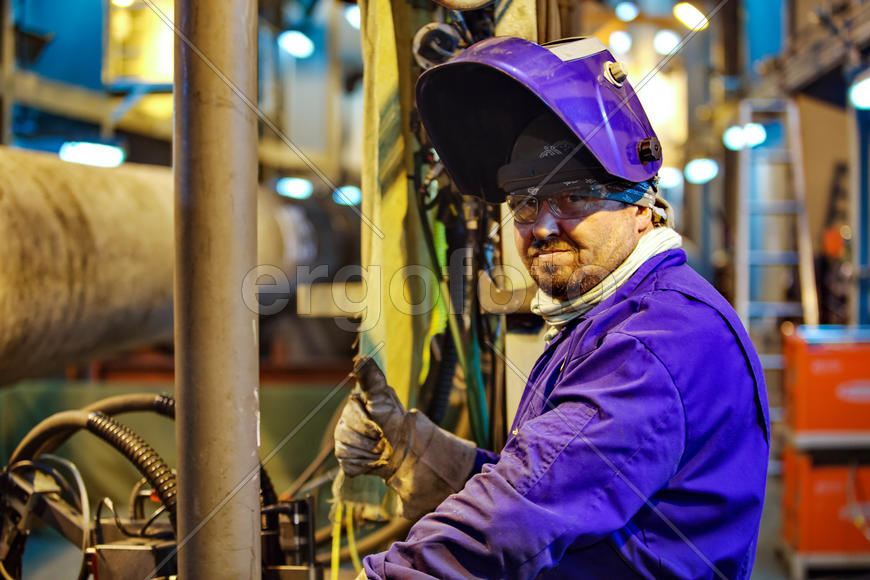 Safety at work. Welding and installation of the pipeline. Industrial weekdays welders and fitters.