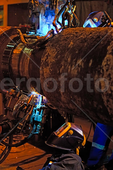 Butt welding underwater pipeline using automatic equipment. Mobile system for welding pipelines