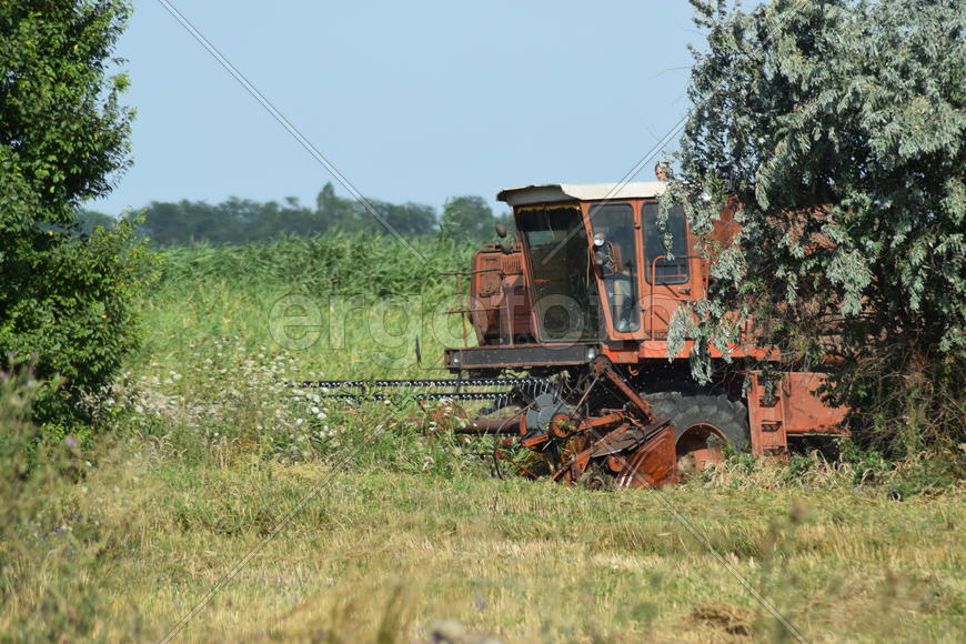 Combine harvester. Agricultural machinery for harvesting from the fields.