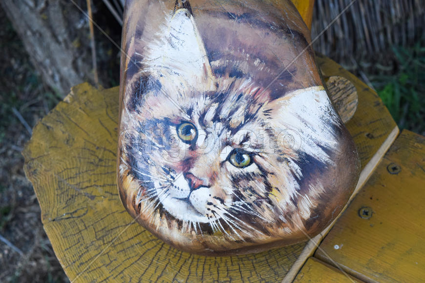 Cat, painted on a rock. Figure cat muzzle on a large stone.