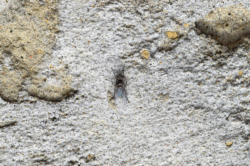 Small fly on a concrete wall. Two-winged insects, scavenger.