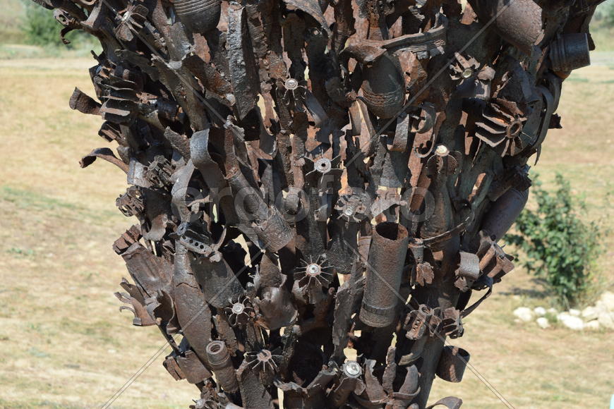 Monument of mines, grenades, bullets and shell fragments. To remember descendants of the horrors of war. The Great Patriotic War.