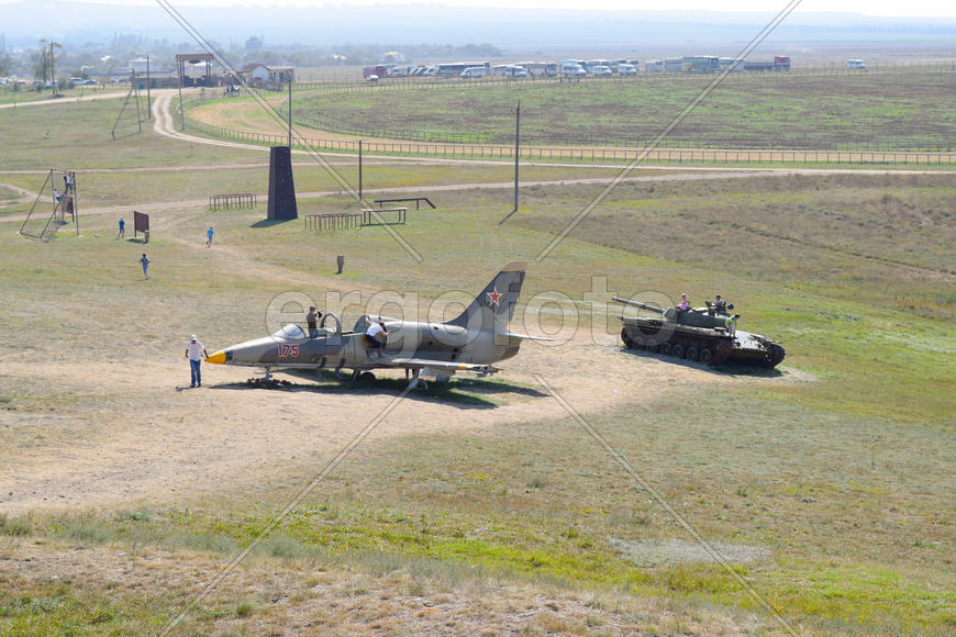 Ataman, Russia - September 26, 2015: Monument of fighter aircraft near the Cossack village Ataman. Military hardware as a museum exhibit available for viewing. Open-air museum.