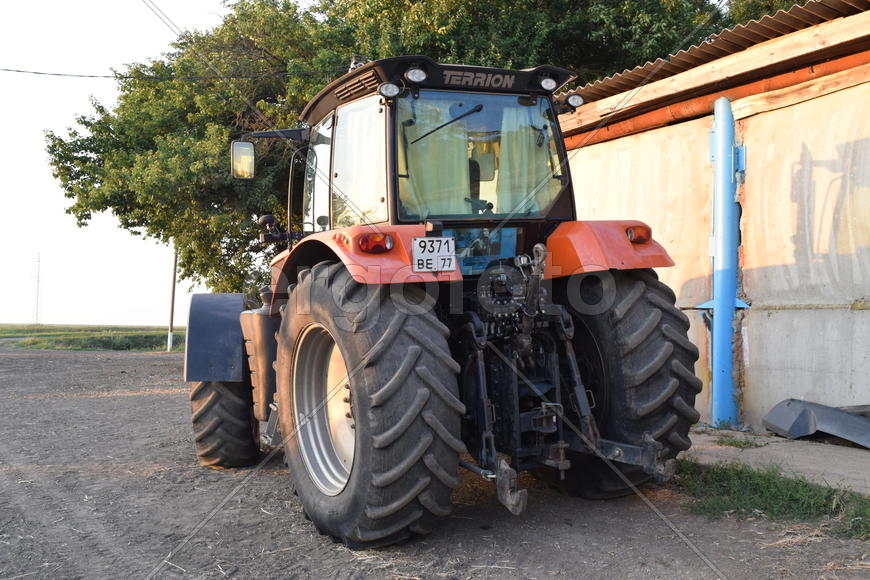 Russia, Temryuk - 15 July 2015: Tractor, standing in a row. Agricultural machinery. Parking of agric