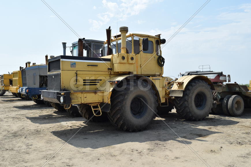 Russia, Temryuk - 15 July 2015: Tractor, standing in a row. Agricultural machinery. Parking of agric