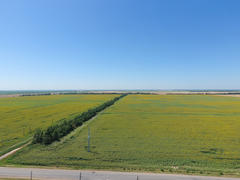 Field of sunflowers. Aerial view of agricultural fields flowering oilseed. Top view.