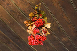 Сушка ягод калины под деревянным навесом.