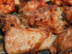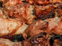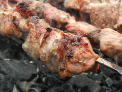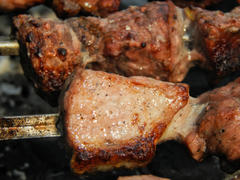 Вкусный жаренный на мангале шашлык из свинины