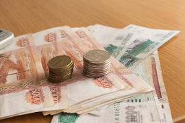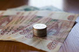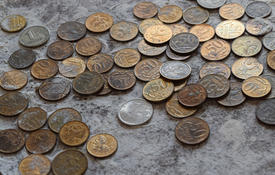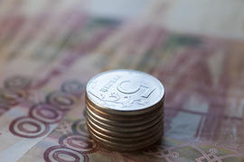 Монеты в муке на весах. Рубли и копейки. Деньги на весах.