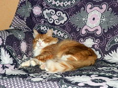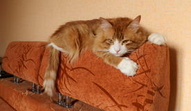 Кот спит на диване