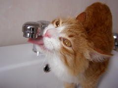 Кот пьёт воду