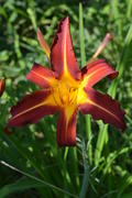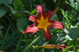 Лиле́йник или Красодне́в (лат. Hemerocállis): бордовый цветок