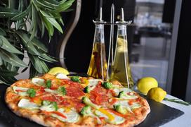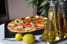 Вегетаринская пицца на тонком тесте с брокколи, кабачками и болгарским перцем