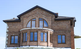 Балконы и окна многоэтажного нового дома. Новый дом из кирпича.
