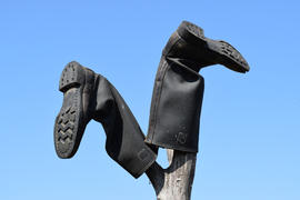Кирзовые сапоги на деревянной палке