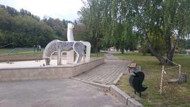 Фонтан в виде лошадей и мусорка в виде пингвина