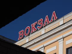 Беларусь, Барановичи: фасад железнодорожного вокзала (фрагмент)