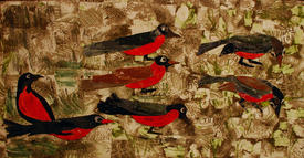 неизвестные птицы - аппликация в стиле   пэчворк (в раме)