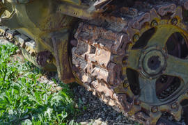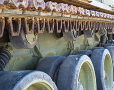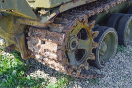 Цепь гусеницы старого бака. Музей военной техники под открытым небом.