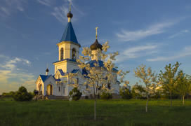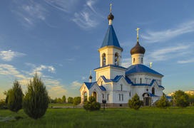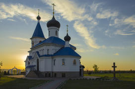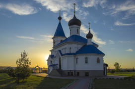 Беларусь, Минск: Свято-Никольская церковь в лучах заходящего солнца