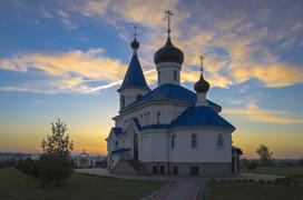 Беларусь, Минск: православная Никольская церковь на фоне заката