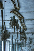 Противогазы, висящие в здании школы в Припяти