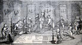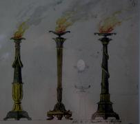 Московский художник Д.Гутов у бронзовой миниатюры "Казак, закуривающий трубку".