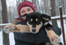 Московский художник-каллиграф Анна Коротеева с щенком Хаски по кличе Клёпа в парке Хаски в парке Сок