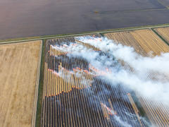 Сжигание рисовой соломы на полях. Дым от сжигания рисовой соломы