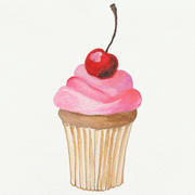 Капкейк с вишенкой (акварель)