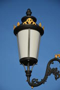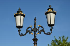 Желтоватый свет ламп накаливания в сумерках на улице.