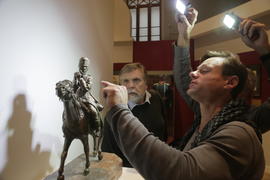 Журналисты у скульптуры "Казак, закуривающий трубку"
