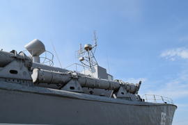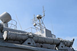 Часть палубы корабля. Коммуникационные устройства и палубные орудия