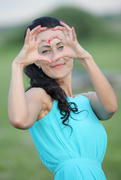 Портрет брюнетки в голубом платье.