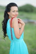 портрет брюнетки с бусами