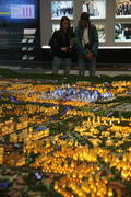 Директор австрийского культурно форума Симон Мраз у макета советского павильона в Париже.