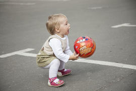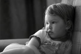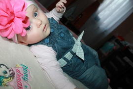 Маленькая девочка с бантиком лежит на кровати. Анфиса