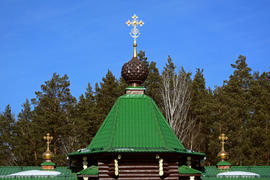 Купол с крестом Надвратного храма в честь иконы Божьей Матери Иверская.