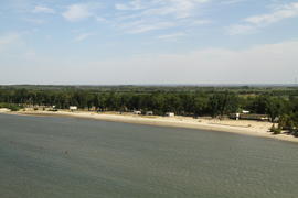 На побережье Азовского моря. Морские волны у скалистого берега.