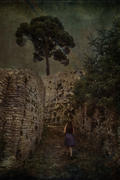 Мрачное фото. Девушка в лабиринте. В стиле гранж