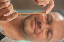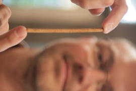 Мужчина на побережье Чёрного моря днём в шторм, Крым