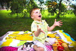 Мальчик в парке с игрушками
