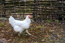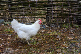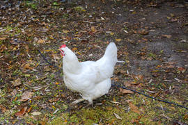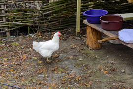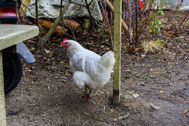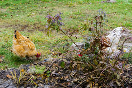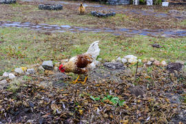 Куры пасутся на территории частного сектора