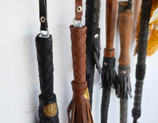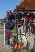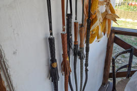 Кнуты и головные уборы казаков на импровизированном рынке.