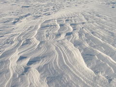 Снежные наметы на ледовой поверхности  озера в Карелии.