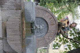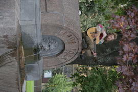 Уличный музыкант сидид на фонтане. Санкт-Петербург 2016