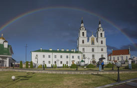 Беларусь, Минск: Святодухов собор и радуга после летнего ливня.